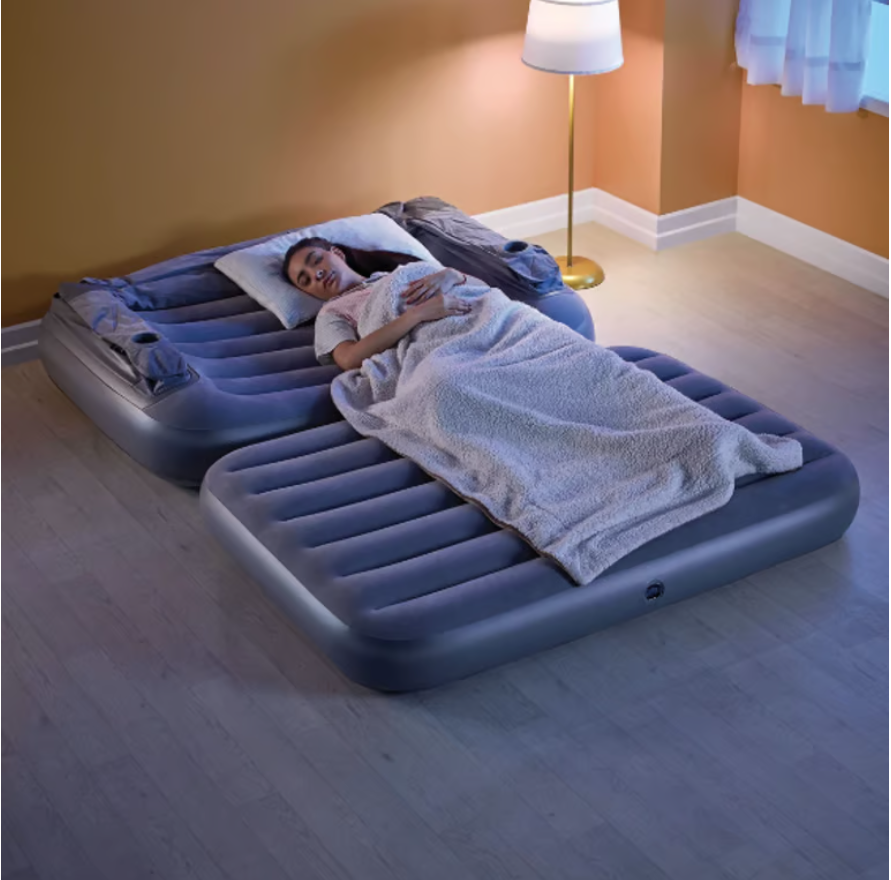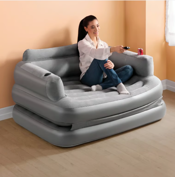 Relájate en cualquier lugar de tu hogar con el Sofá Cama Oxford Betterware. Esta solución para tu hogar incluye 3 soluciones en 1: sofá, colchón y colchón con respaldo. ¡Disfruta de tus bebidas favoritas gracias a su descansabrazos con portavasos! Incluye bomba de inflado. Tiene un soporte de hasta 160kg, lo que lo hace ideal para uso diario o para tus visitas.